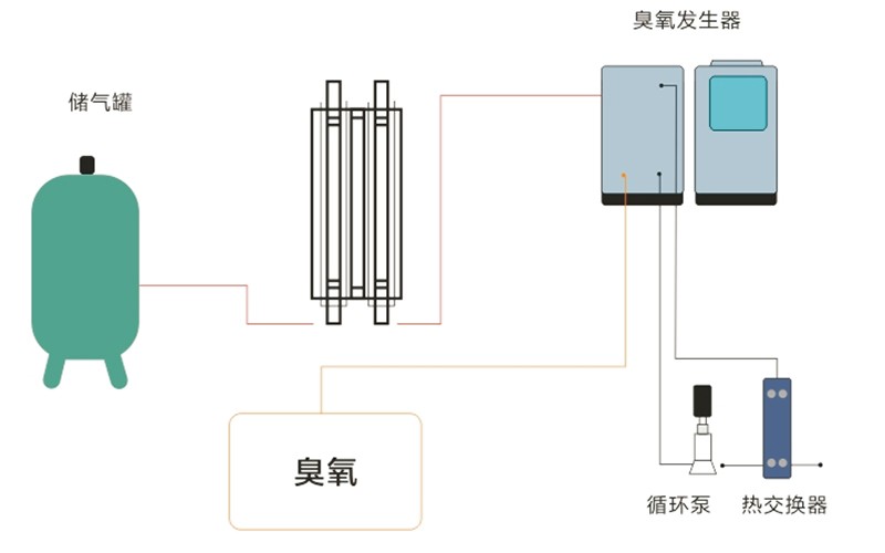 液氧源臭氧系統(tǒng)主要包括:液氧儲(chǔ)罐、氣化器和調(diào)壓裝置;臭氧發(fā)生器主機(jī)、配電和自控系統(tǒng);控制閥門和檢測儀表;臭氧投加和尾氣破壞系統(tǒng)組成。